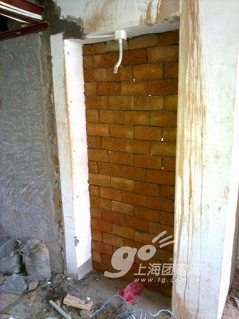這里是新砌起來的衛(wèi)生間入口,冰箱處的樣子,瓦工葉師傅的手藝看上去不錯的。