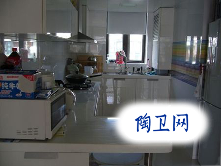 白色的櫥柜,有點跟白色的墻磚融合的感覺。