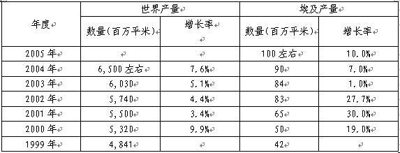 盡管埃及該行業(yè)產(chǎn)品的產(chǎn)量在2002年—2003年之間變化不大,但在1999年—2005年間的增長速度卻超出了世界的平均增長水平。