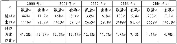 2000—2004年埃及瓷磚和衛(wèi)生潔具出口量國際分布表