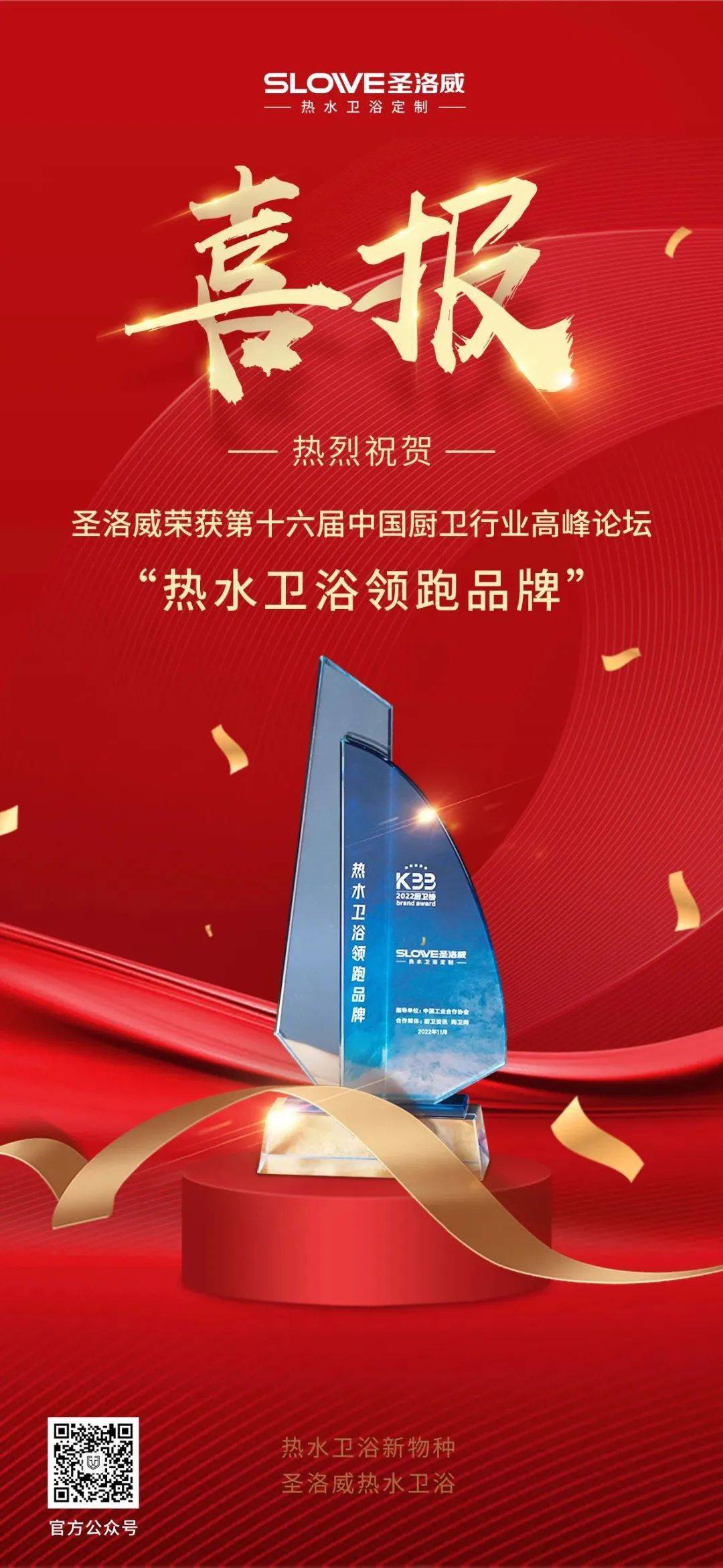 11月28日,第十六屆中國廚衛(wèi)行業(yè)高峰論壇在廣東佛山召開,圣洛威熱水衛(wèi)浴憑借熱水行業(yè)頭部品牌的影響力,以智能科技加持的人性化熱水產(chǎn)品,符合消費(fèi)趨勢發(fā)展的產(chǎn)品結(jié)構(gòu)體系,以及良好的大眾口碑及知名度,從眾多參評企業(yè)中脫穎而出,榮膺“熱水衛(wèi)浴領(lǐng)跑品牌”!