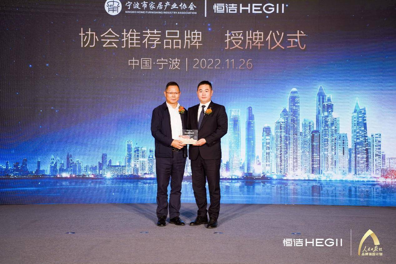 煥新城市,行業(yè)一起來助力。本次發(fā)布會(huì)上,寧波恒潔被寧波市家居產(chǎn)業(yè)協(xié)會(huì)授予“協(xié)會(huì)推薦品牌”——這標(biāo)志著恒潔在寧波的發(fā)展到達(dá)了新的高度。