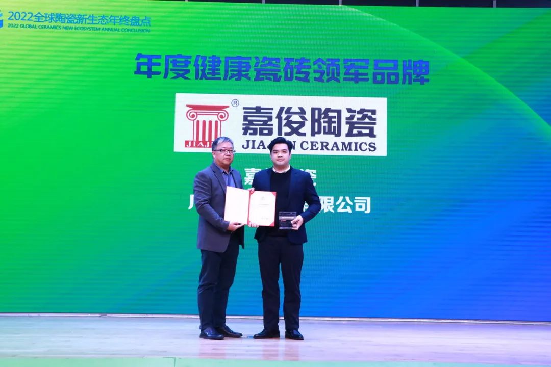 嘉俊陶瓷獲得了“年度健康瓷磚領(lǐng)軍品牌”的稱(chēng)號(hào);