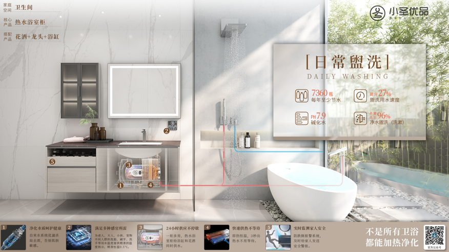 以衛(wèi)浴空間為例,小圣優(yōu)品衛(wèi)浴以熱水浴室柜、熱水花灑、熱凈龍頭核心三劍客為標(biāo)志產(chǎn)品,并開發(fā)推出花灑、龍頭、浴室柜、智能馬桶、五金配件等全衛(wèi)產(chǎn)品,以整體熱水空間解決方案,滿足了年輕消費(fèi)者對(duì)健康、智能家庭用水生態(tài)系統(tǒng)與高品質(zhì)生活的雙重需求。
