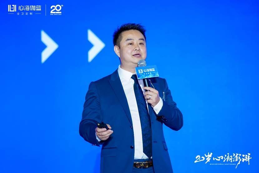 晚宴開始,張愛民董事長(zhǎng)在閃耀燈光中登場(chǎng),熱情洋溢地發(fā)表了20周年報(bào)告。張董真情流露地回顧了公司20年的發(fā)展歷程,從幾個(gè)人的從浴室柜單一品類的獨(dú)角獸到全衛(wèi)定制戰(zhàn)略領(lǐng)航,從多品牌運(yùn)作到贏伽電商、凱庭淋浴房,雅頌衛(wèi)浴等七大分公司/中心集團(tuán)發(fā)展,從專賣區(qū)到全國(guó)百城千家門店、至商業(yè)版圖覆蓋海外,心海伽藍(lán)始終敢為創(chuàng)新、銳意進(jìn)取,從率先扛起數(shù)智化生產(chǎn)大旗開始,心海伽藍(lán)始終堅(jiān)持開放分享的態(tài)度,與行業(yè)共同成長(zhǎng)。