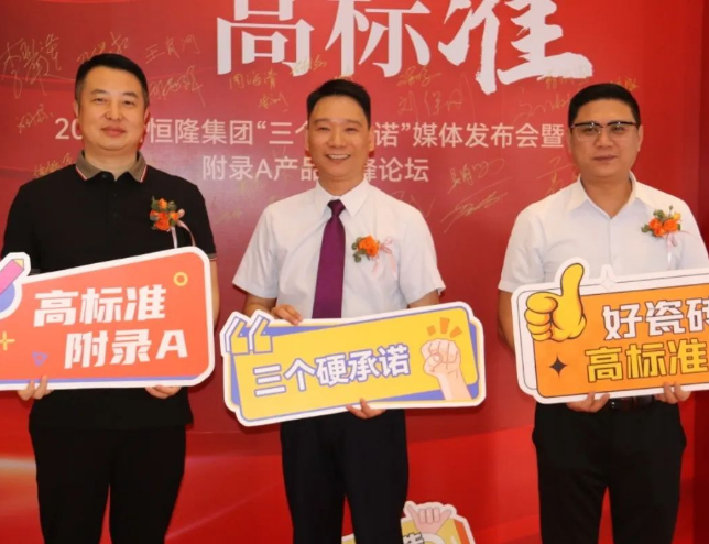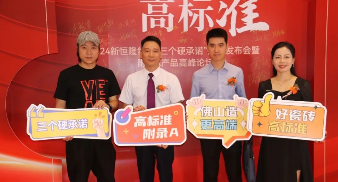 在全場嘉賓矚目之下,“三個硬承諾”啟動儀式隆重開啟,現(xiàn)場氣氛隨之高漲。這標(biāo)志著新恒隆集團(tuán)正式發(fā)布“三個硬承諾”,以高品質(zhì)、高價值、高標(biāo)準(zhǔn)的新面貌煥新登場,重構(gòu)高品價比的佛山瓷磚,為廣大消費(fèi)者帶來更多物超所值的佛山瓷磚。