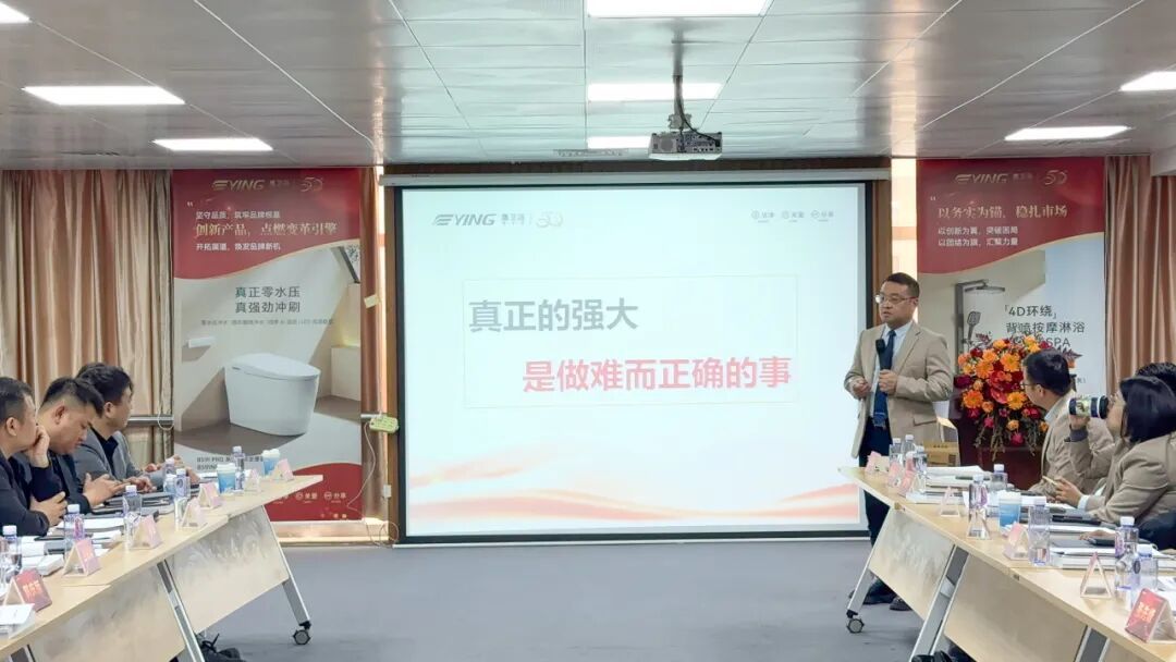 在時代浪潮中,明確目標與有效方法對于企業(yè)發(fā)展至關重要。鷹衛(wèi)浴總經理龍治宇在會議中指出,2025 年鷹衛(wèi)浴要精準錨定目標,探尋有效路徑。堅定在產品研發(fā)、品牌理念、服務體系的改革方向,推進改革、優(yōu)化環(huán)節(jié),構建前瞻戰(zhàn)略、創(chuàng)新規(guī)劃與活力團隊,為新一年發(fā)展繪宏偉藍圖。